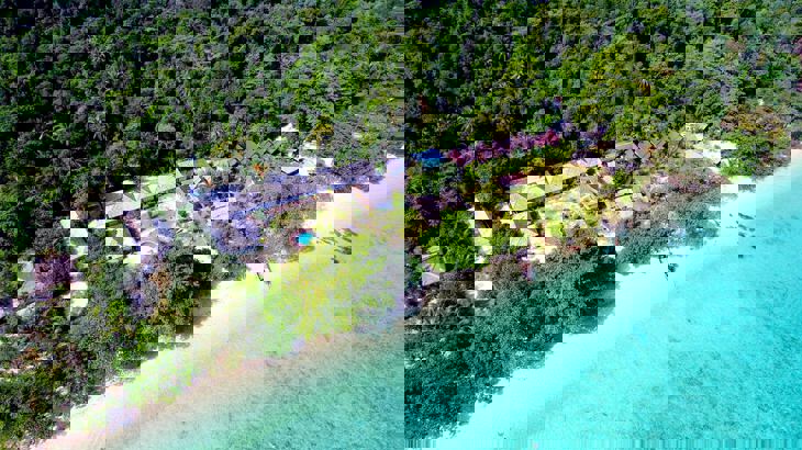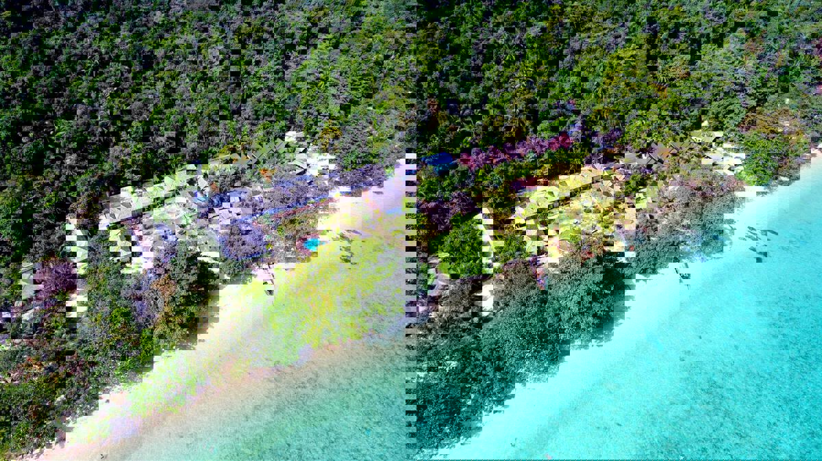 Strandhotell omgivet av vacker natur. |