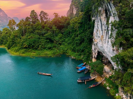 Khao Sok är ett av Thailands mest imponerande naturområden, med klippformationer som reser sig dramatiskt över den spegelblanka Cheow Lan-sjön. Regnskogen är hem för ett rikt djurliv och det är inte ovanligt att se apor eller höra gibbons läten. Många väljer att bo i flytande bungalows på sjön - en upplevelse som är lika magisk som den låter. Här får du natur, lugn och äventyr i ett och samma paket.