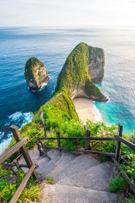 Ön är särskilt känd för sina spektakulära utsiktspunkter som Kelingking Beach (med den berömda T-rex-klippan), Broken Beach och Angel’s Billabong. Dessutom lockar Nusa Penida med snorkling och dykning i världsklass – bland annat med jättestora manta rays vid Manta Point.