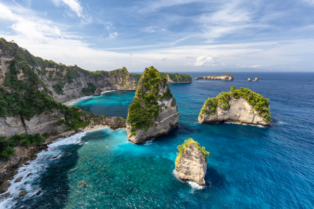 Öarna Nusa Lembongan, Nusa Ceningan och Nusa Penida är kända för sina dramatiska klippkuster, klara vatten och vackra utsiktsplatser.