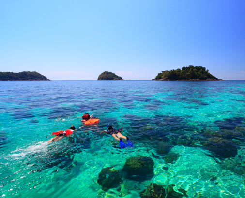 Thailand har fantastiska snorklingsmöjligheter i nationalparker och på mindre öar, där koraller och färgglada fiskar ofta kan ses nära stranden. Från Phuket och Krabi kan du ta dagsutflykter till kända öar som Phi Phi, Racha Island och Similan Islands, som anses vara bland landets bästa snorklingsområden. Vattnet är varmt året runt och sikten är ofta hög under högsäsong.